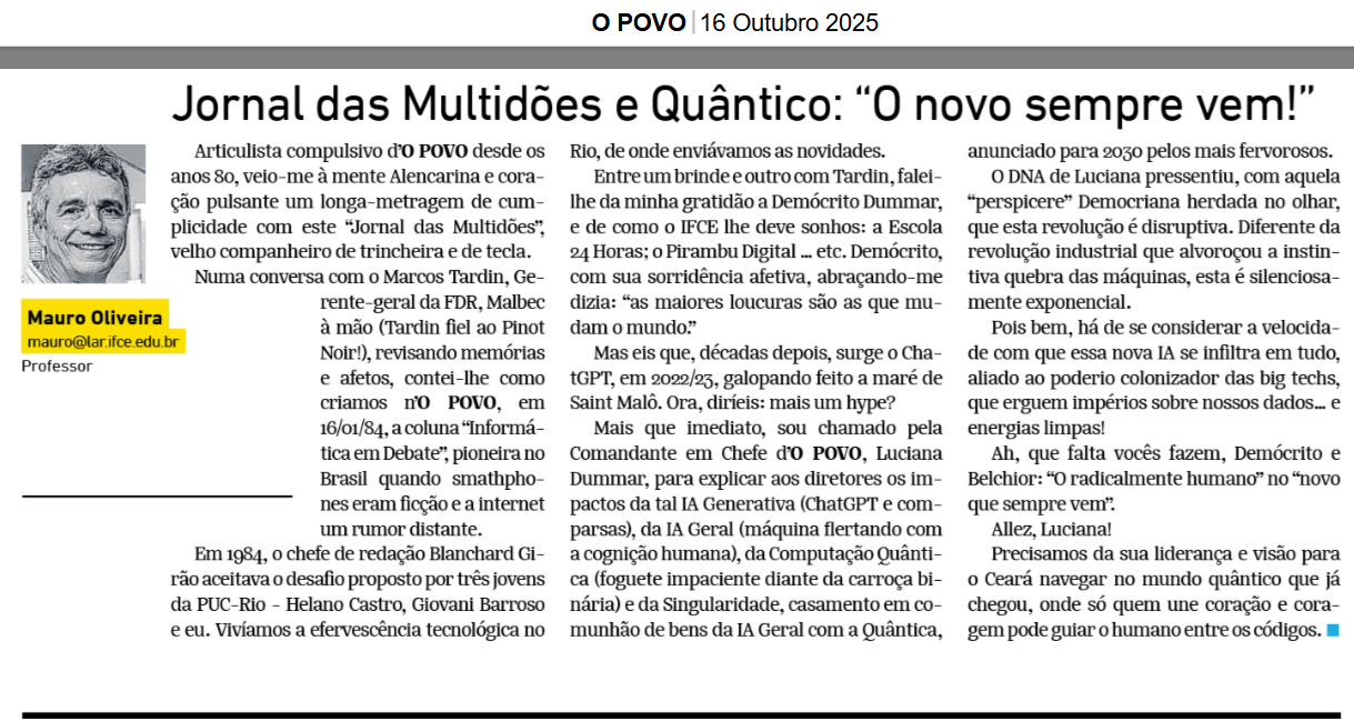 Nº 330 (16/out): O Jornal das Multidões e o Quântico. “O novo sempre vem!” O POVO